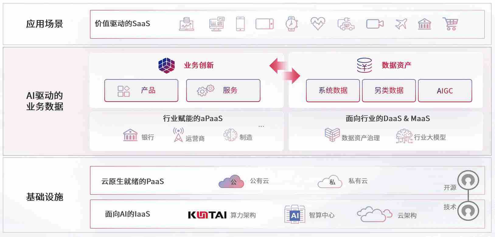 数字时代,,,,围绕企业数字化转型的关键要素,,,NG集团数码开创性的提出数云融合战略和技术体系框架,,,着力在云原生、、、数字原生、、、、AI原生和信创产业上架构产品和服务能力,,,为处在不同数字化转型阶段的快消零售、、、、汽车、、金融、、、、医疗、、、、政企、、教育、、、运营商等行业客户提供泛在的敏捷IT能力和融合的数据驱动能力,,,,构建跨界融合创新的数字业务场景和新业务模式,,,,助力企业级客户建立面向未来的核心能力和竞争优势,,,,全面推动社会的数字化、、、、智能化转型升级。。